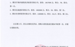 本項目評審活動于2021年2月19日圓滿結(jié)束,現(xiàn)將評審情況公示如下:1、雅安匯澤建材有限公司;報價:2437890.00元;得分:234.50;排名:第一名2、雅安市名山區(qū)恒達建筑建材有限公司;報價:2498880.00元;得分:220.00;排名:第二名3、雅安市眾鑫德光建材有限公司;報價:2501540.00元;得分:209.80排名:第三名公示期1日,若公示期間無異議,采購人將發(fā)放成交通知書給第一名,并簽訂采購合同。...