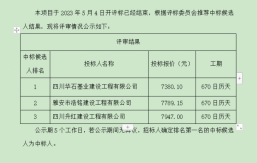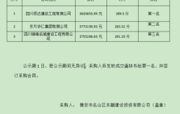 成雅工業(yè)園區(qū)百丈安置房二期項(xiàng)目鋼筋采購,根據(jù)有關(guān)法律、法規(guī)、規(guī)章的規(guī)定,于2023年4月21日經(jīng)雅安市名山區(qū)益業(yè)商貿(mào)有限公司競爭性談判比選流程,評審工作已經(jīng)結(jié)束,成交人已經(jīng)確定,現(xiàn)將成交結(jié)果公示如下:成交單位名稱:四川霞成商貿(mào)有限公司成交價(jià):加成價(jià)30元/噸進(jìn)場時間:待甲方通知成交質(zhì)量要求:合格自成交結(jié)果公示之日起一個工作日內(nèi),對成交結(jié)果無異議的,采購人將簽發(fā)成交通知書,并在五個工作日內(nèi)簽訂合同。雅安市名山區(qū)益業(yè)商貿(mào)有限公司2023年4月23日...
